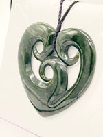 Extra Large Triple Koru Heart Pounamu Necklace Measurement: 150mm x 100mm |